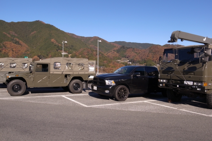 普段ですと大型トラックの間に停めても意外と目立つんですけども、この時ばかりはラムトラも霞んでましたよ