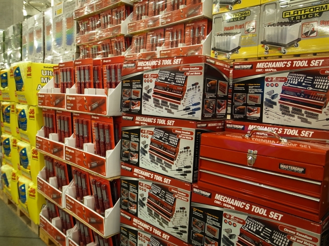 入り口直ぐ脇から、工具セットにSnap-onのLEDライトセット。一番奥の黄色い箱はファイバークロスが山積み。