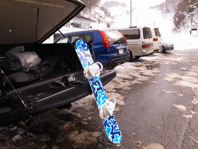 まぁ、出張行く当初からボード行く目的でクルマの冬支度を整え、ボードもメンテしてこっそり荷台に一式積んで出かけたワケでして、半ば強引かつ確信犯的に休みを取得したワケなんですけども・・・
