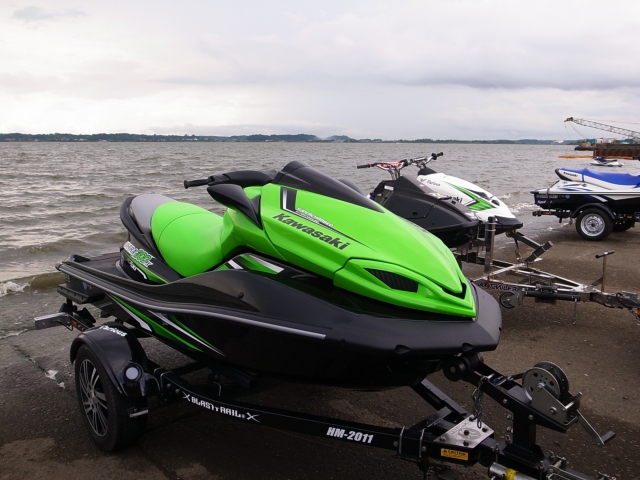 上 の写真にある緑のジェットですが、カワサキのジェットスキーになります。1500CCの4サイクルエンジンに生意気にも(?)スーチャー搭載し、約 300HPのこのマシンは軽く最高速100km超えます。ちなみにスーチャーはアメ車でもお馴染み、イートン製のTVSルーツ式スーパーチャージャー。ア クセル全開からビビッてアクセル離すと普通にすっ飛んでいきます(まぁ、すっ飛んでいくのはジェットではなくて自分自身ですけども・・・笑)
